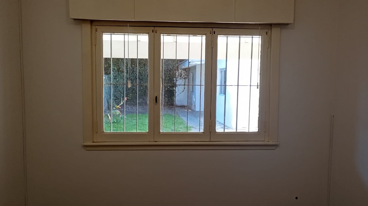 Tres dormitorios: uno al frente con rejas y persianas, un dormitorio principal de generosas dimensiones y otro con vista lateral.