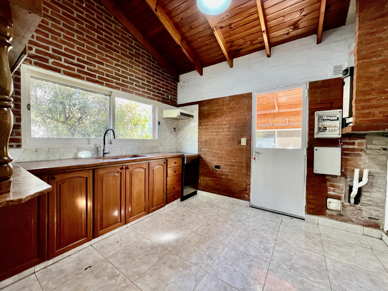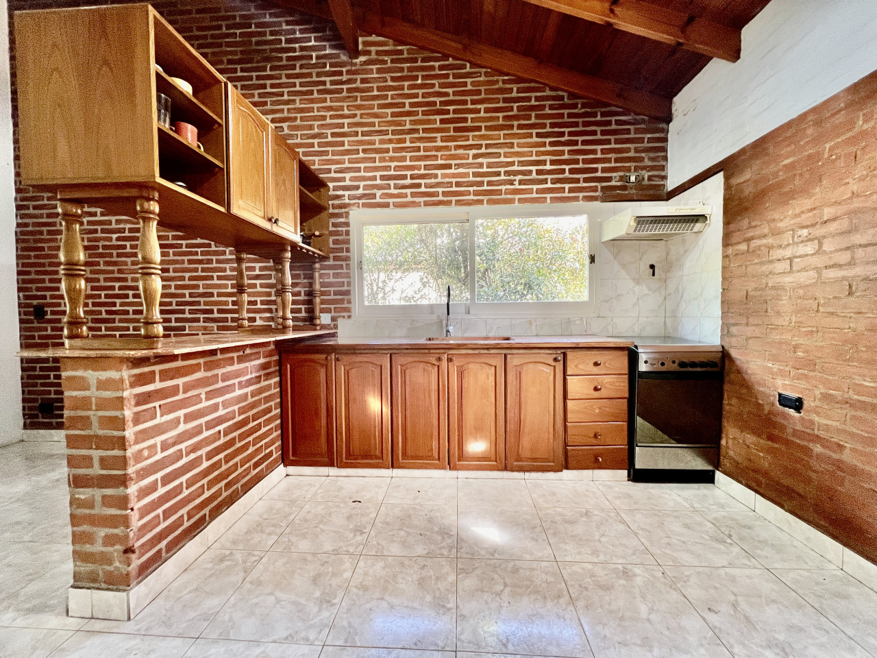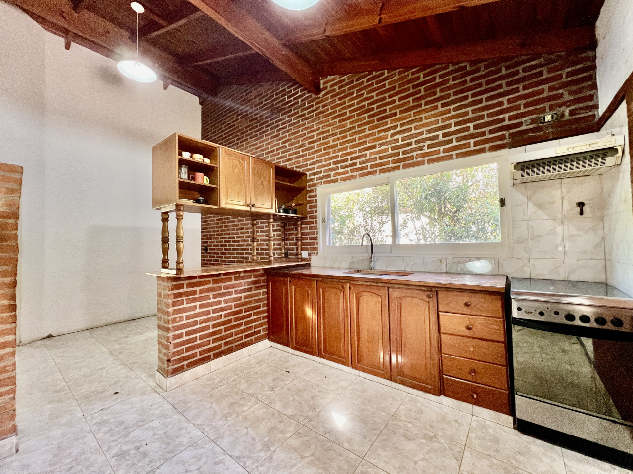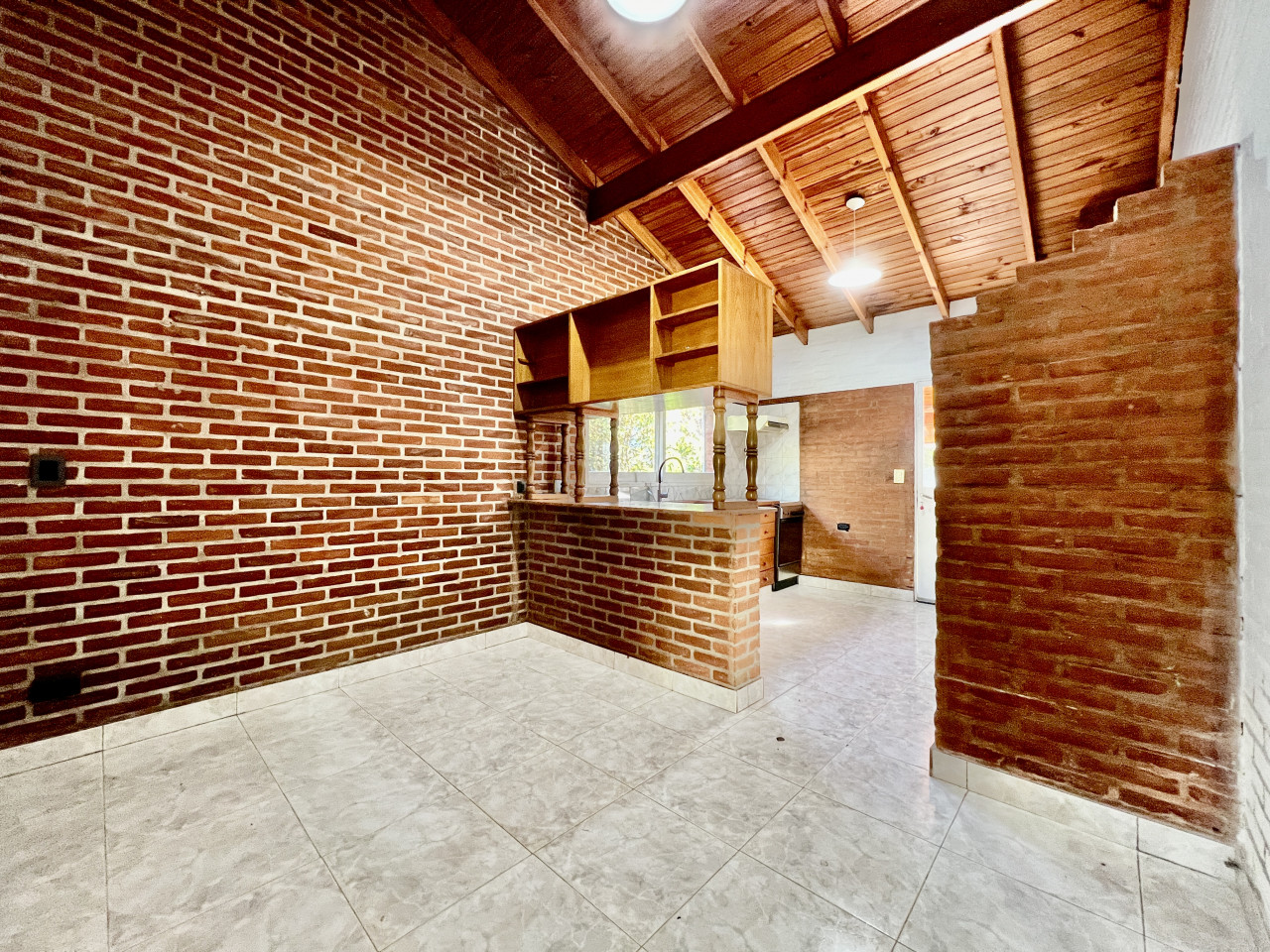 - La cocina está conectada a un acogedor comedor diario; y cuenta con una barra moderna con bajo mesada y alacenas