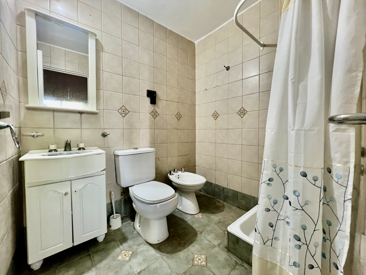 - El baño de uso común está ubicado en el pasillo de distribución y cuenta con tres piezas con bañera